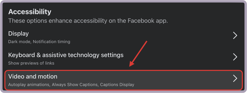 Once there, look for the option labeled "Video and Motion". This will take you to the option to remove captions.